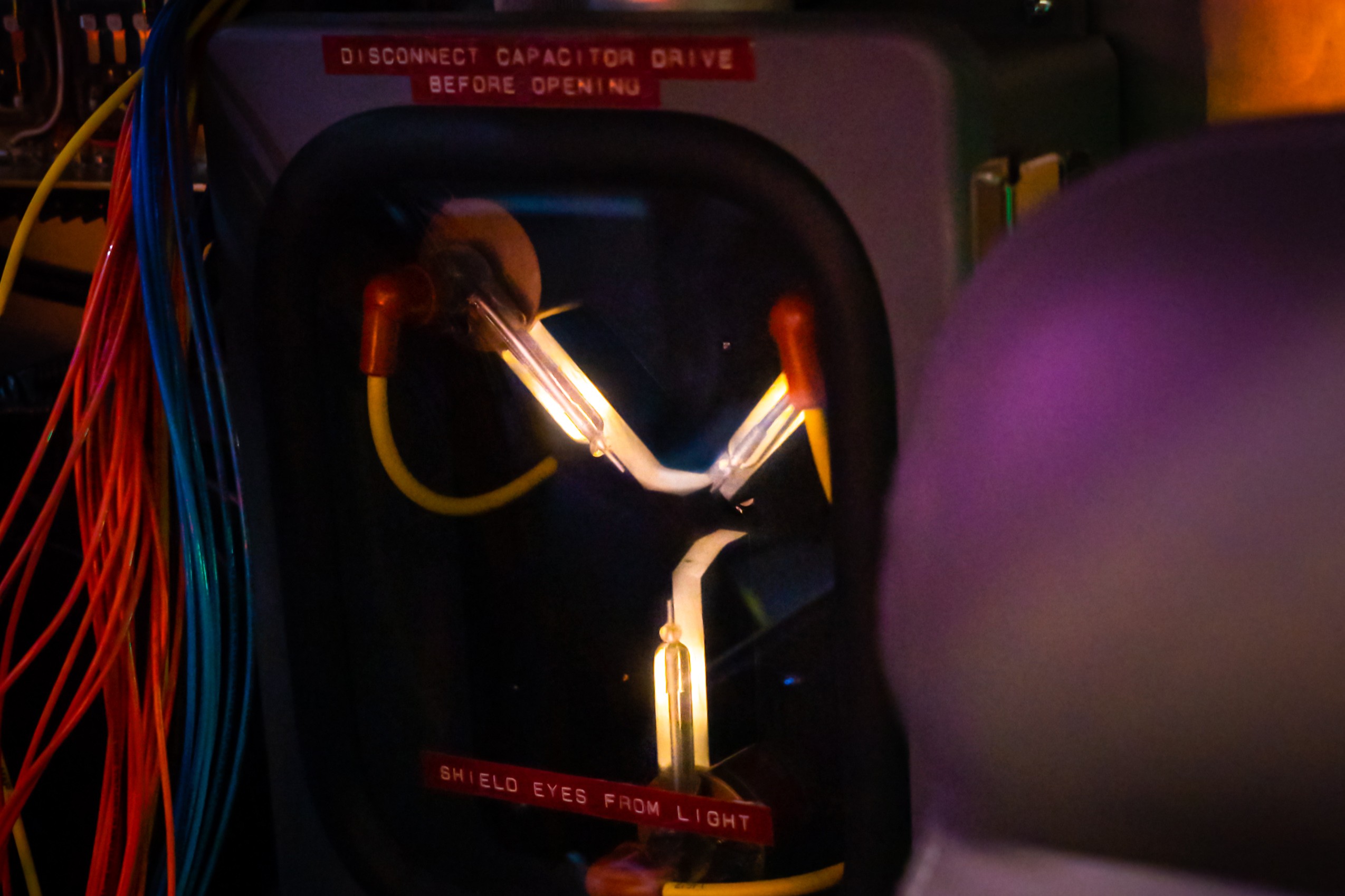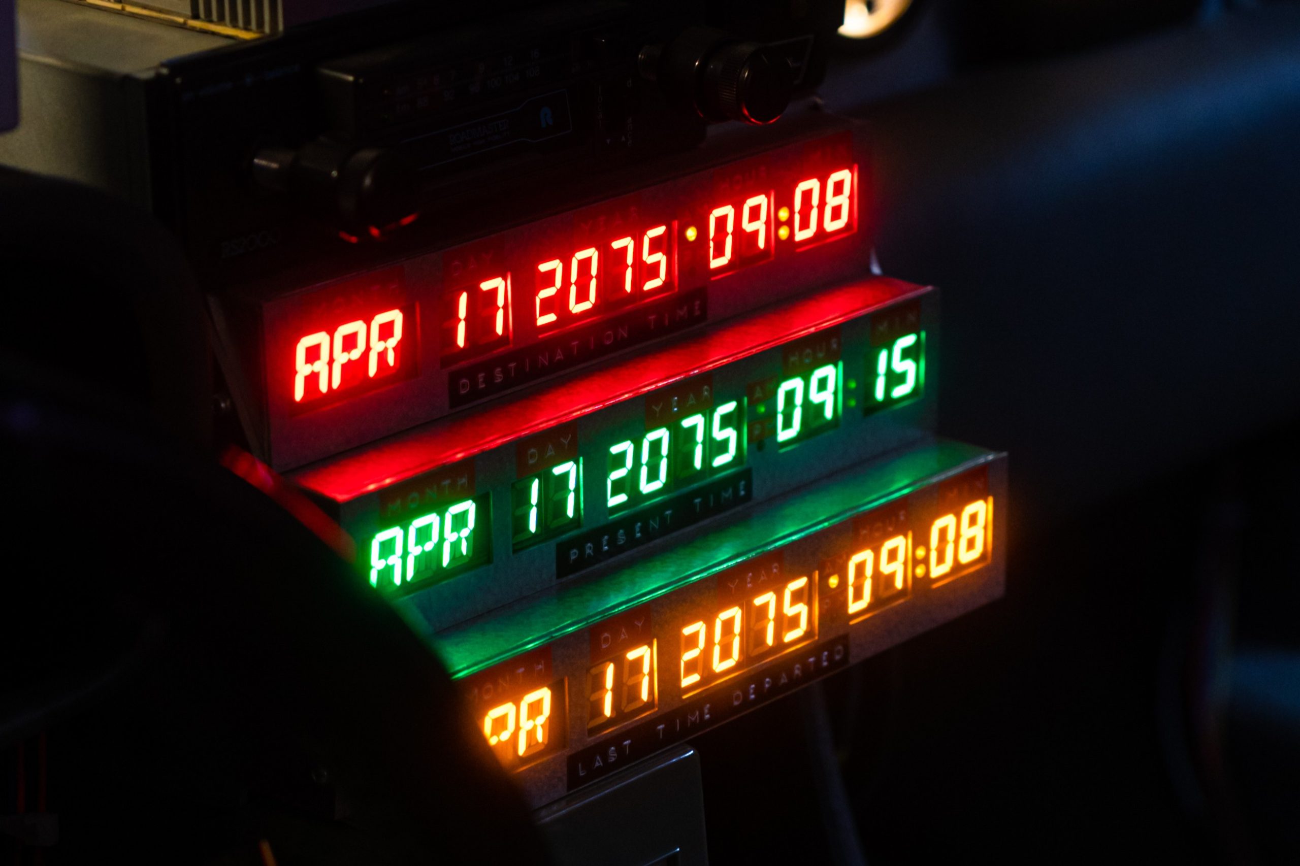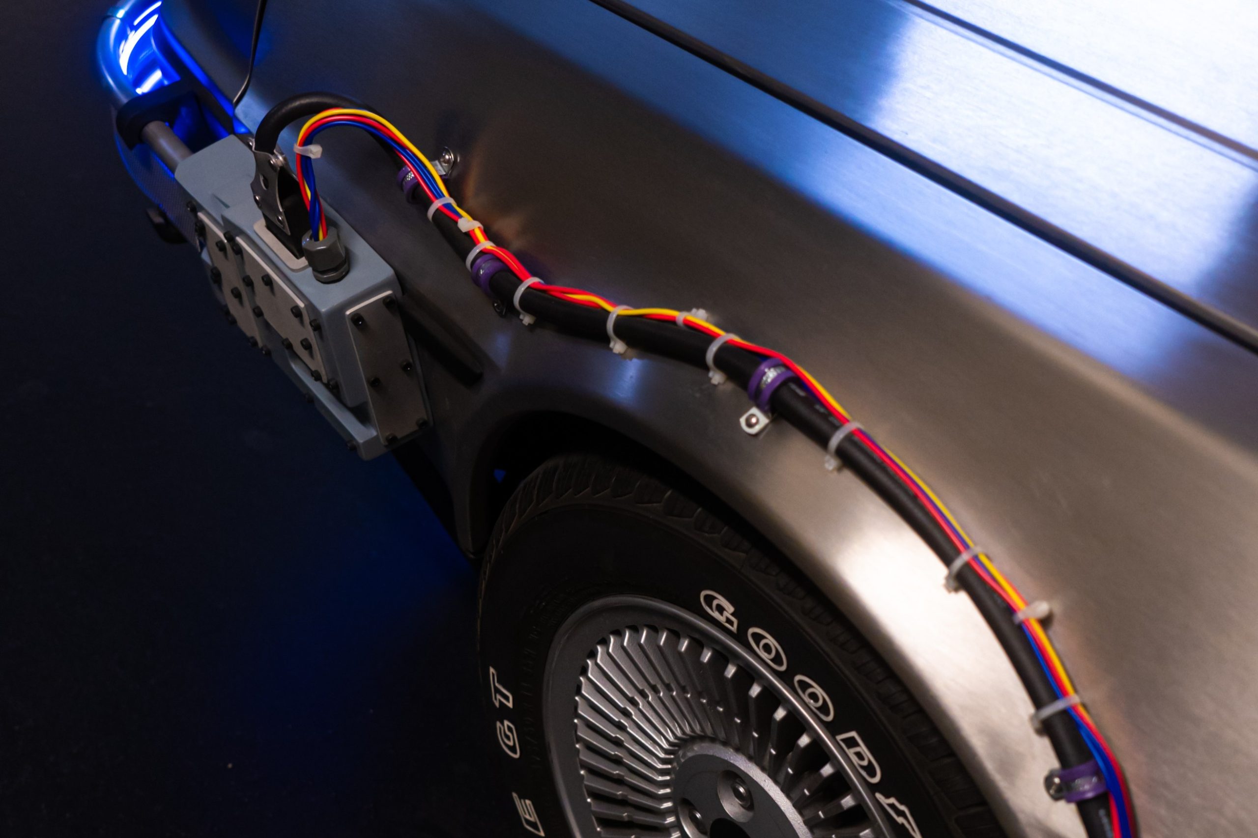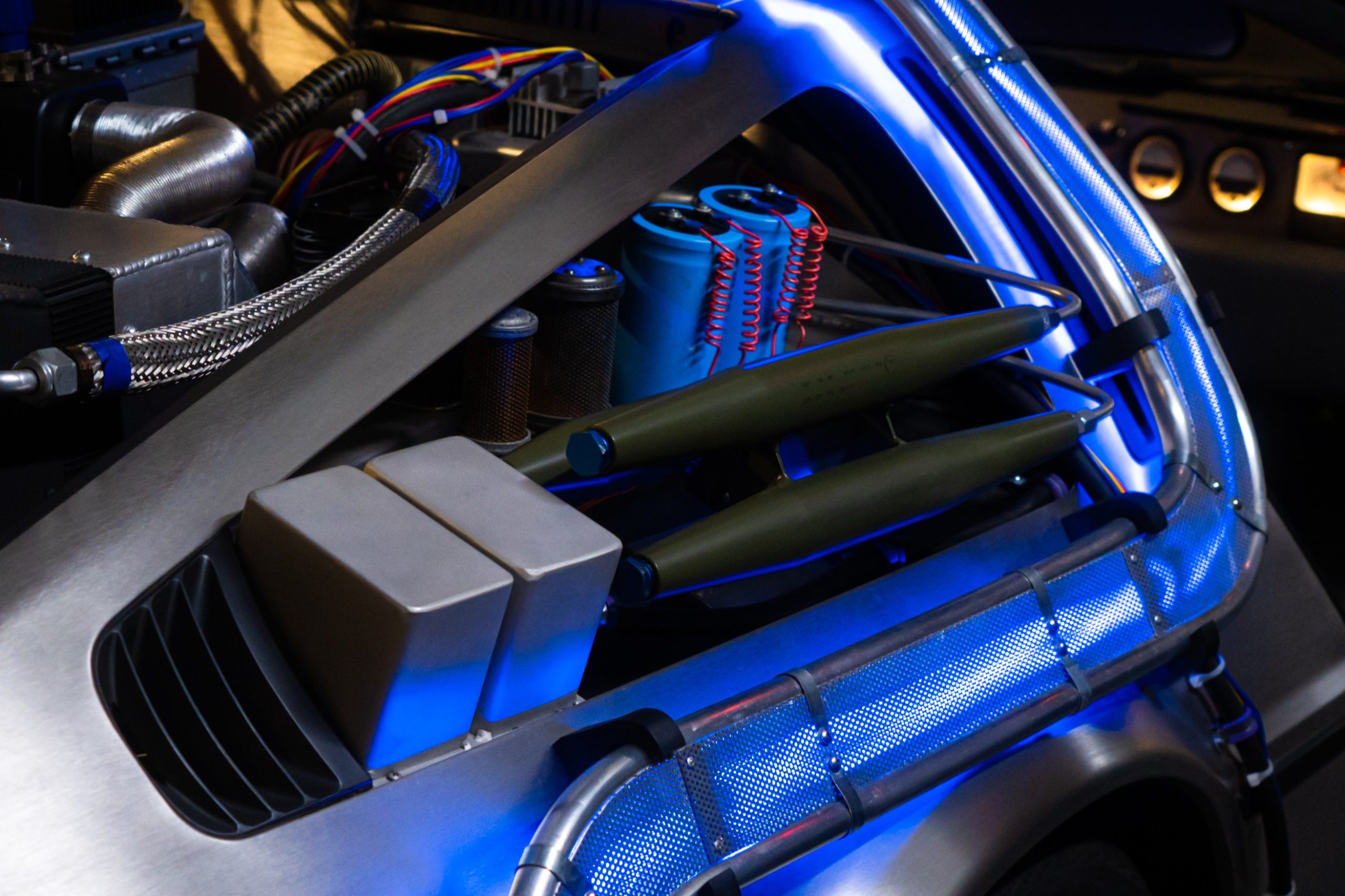 Éléments visuels inspirés du film (convecteur temporel, câblages, instrumentation, effets lumineux, selon configuration)